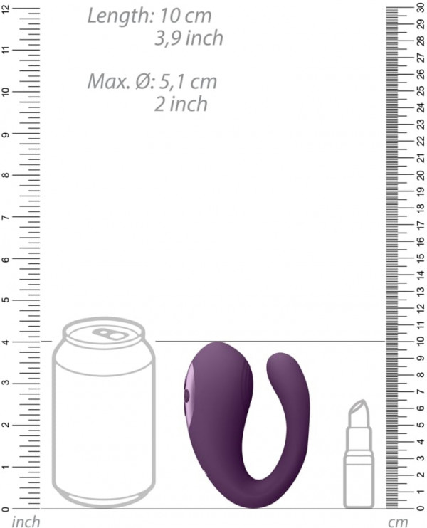 Форма девайса выполнена в виде подковы, где найбольшая часть располагается на клиторе, а найменьшая с двумя стволами вводится вагинально. При этом мужчина может входить в женщину абсолютно беспрепятственно, и разделять с ней безумные виброволны!